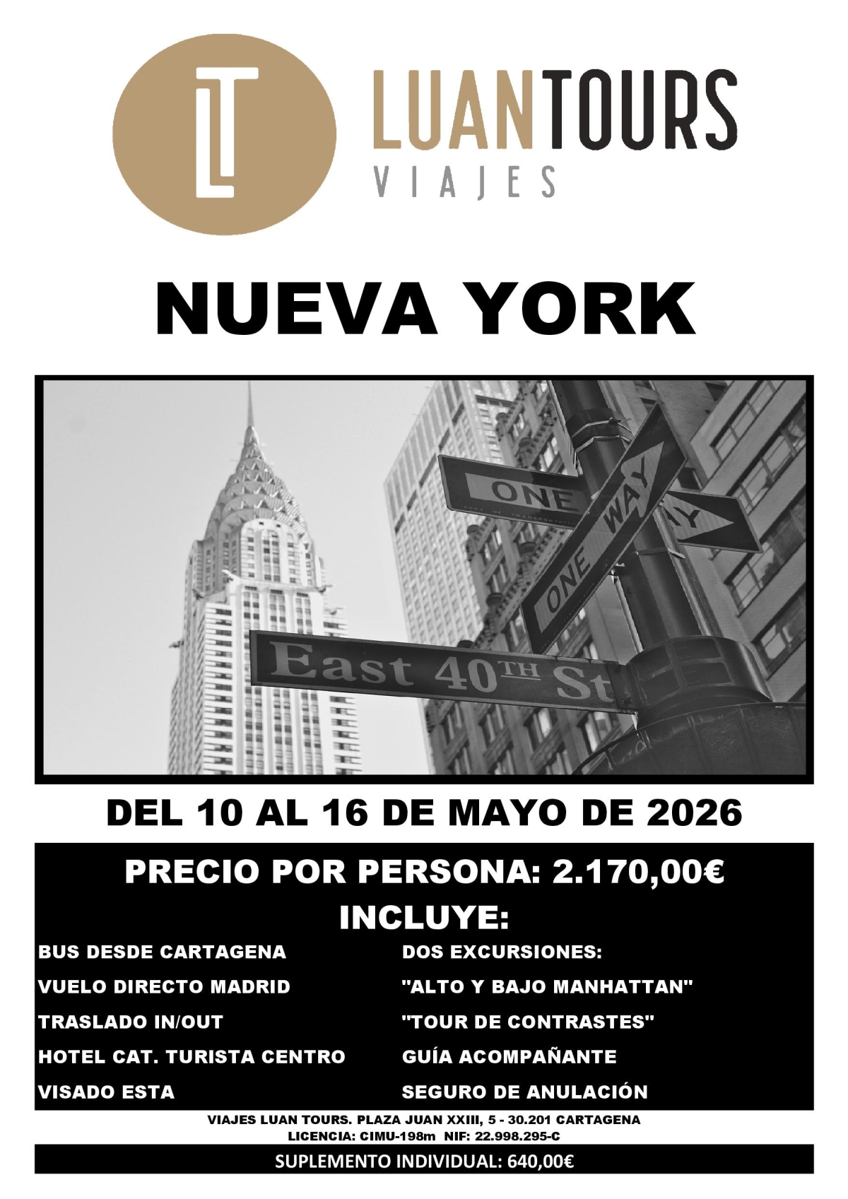 - Excursiones detalladas en el programa (Alto y Bajo Manhattan y Tour de Contrastes)
